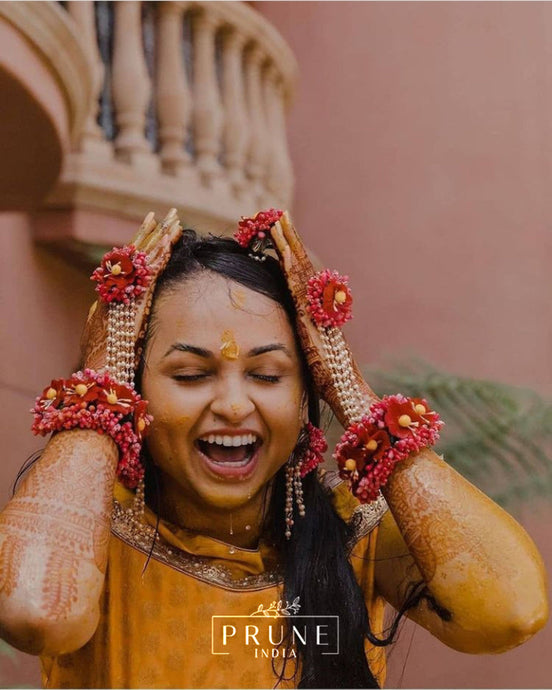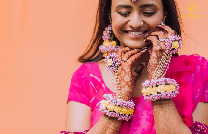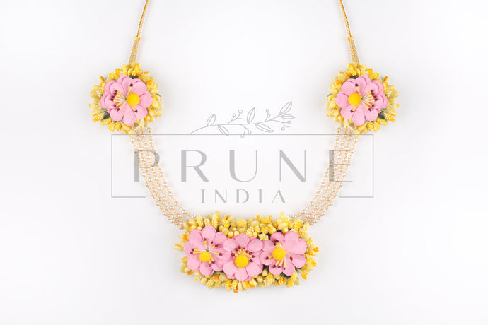 Yellow And Pink Floral Jewellery Set (Wbtdeh-03)