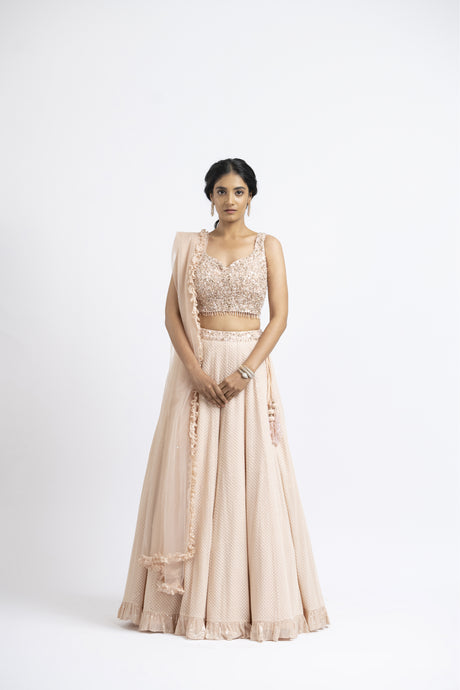 Blush Pink Floral Printed Embroidered Lehenga Set