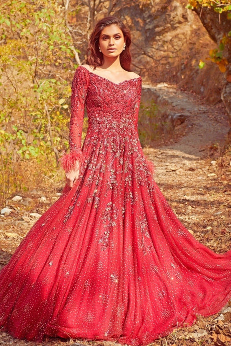 BURNT ORANGE KALIDAAR WITH BURNT ORANGE X HOT PINK SHADED DUPATTA