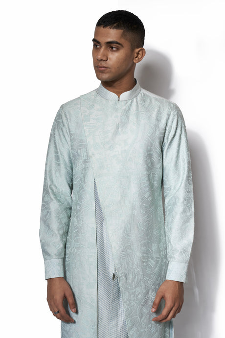 Aqua Blue Asymmetrical Embroidered Kurta Set