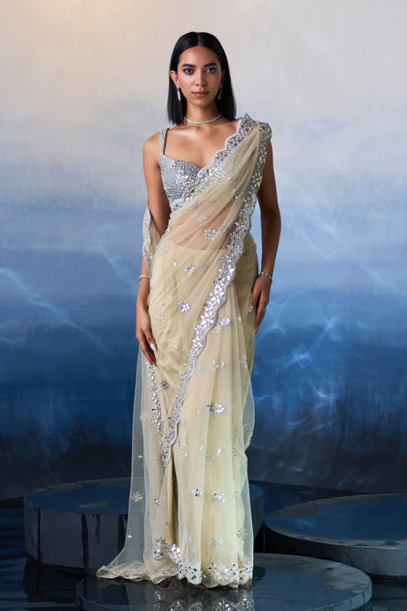 His mission is to infuse a sense of divinity into every bride through his designs. His karegeri lies in traditional embroidery techniques applied to modernized silhouettes, catering to the needs of the contemporary 21st-century bride.