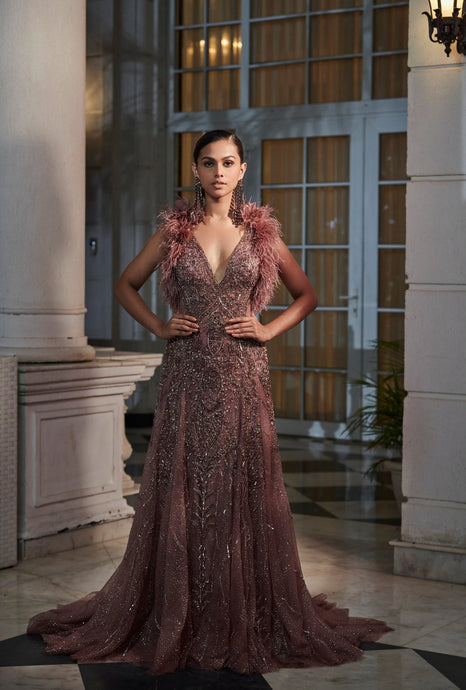 Mallow A Dusty Mauve Hand Woven Bridal Orgnaza Gown