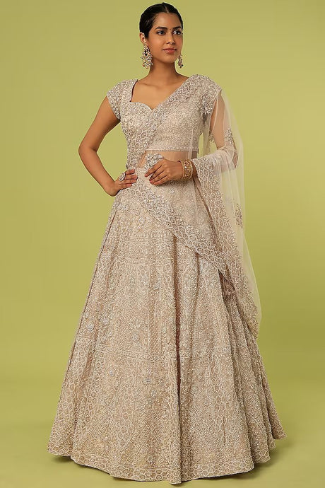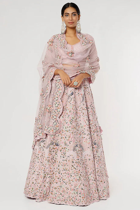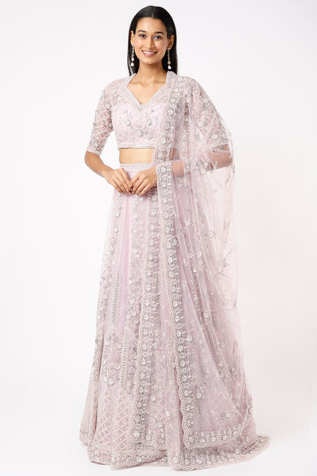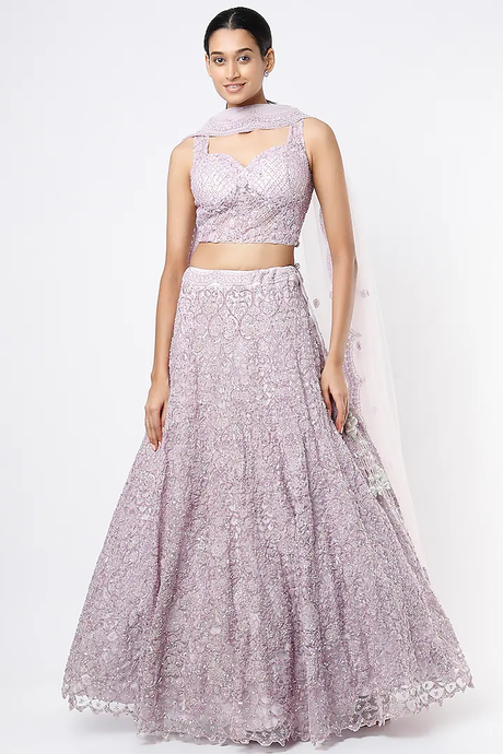• Lilac net cut dana, pearl and sequins embroidered lehenga