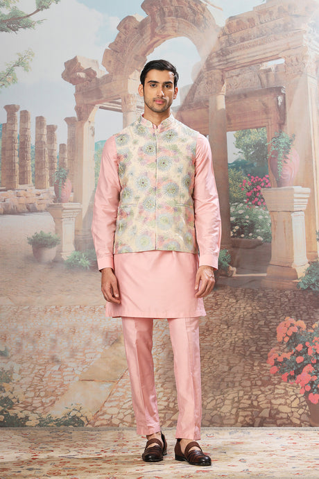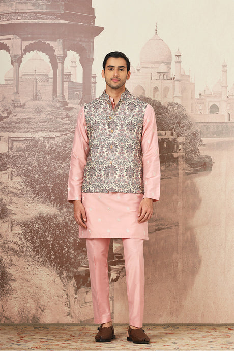 Orchid Rose Chanderi Embroidered Kurta Bundi Set