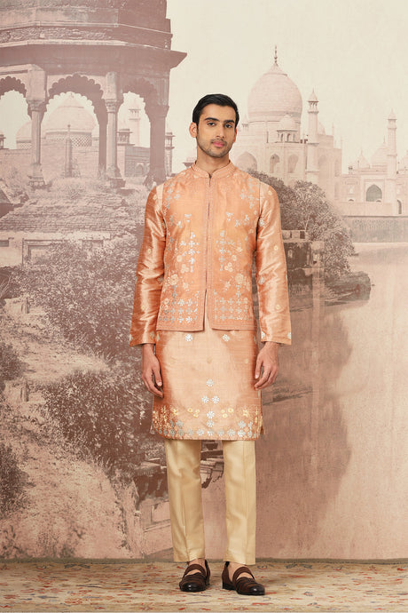 Tuscan Gold Embroidered Tussar Silk Bundi Set