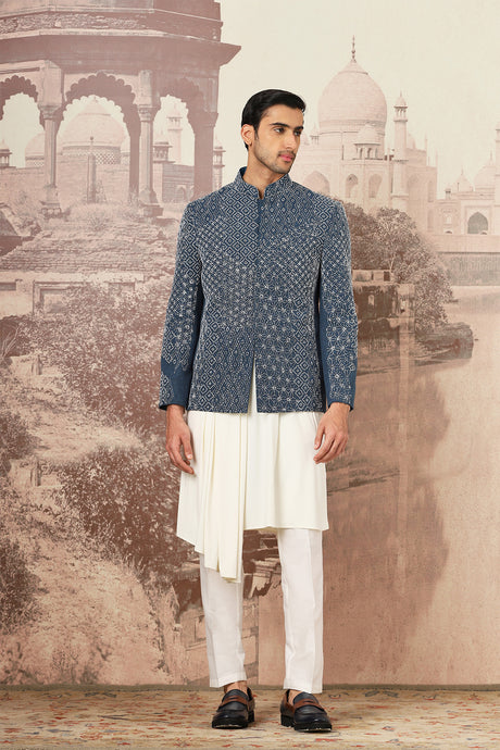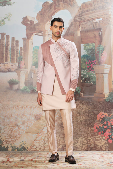 Lilac Seraphic Asymmetric Embroidered Bandhgala Set