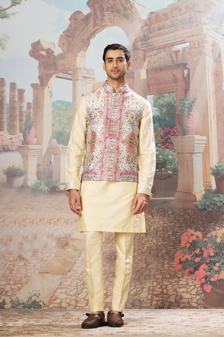 Mughal Minaret Digital Print Mirror Embroidered Kurta Bundi Set
