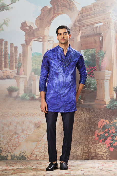 Indigo Gleam Sequin Embroidered Print Kurta Set