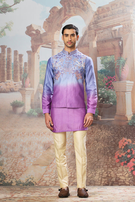Violet Dusk Ombre Embroidered Kurta Bundi Set