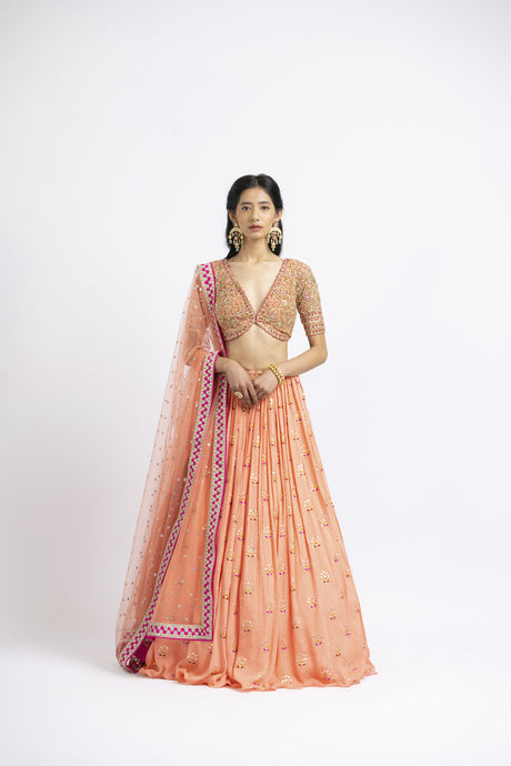 • MANGO ORANGE GEORGETTE LEHENGA CHOLI SET