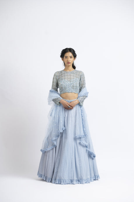 ICE BLUE TULLE LEHENGA CHOLI SET