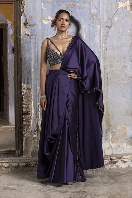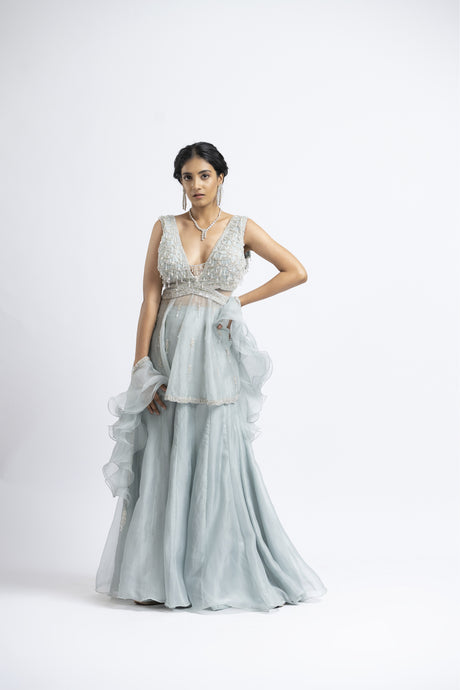 GREY BLUE ORGANZA PEPLUM SHARARA SET