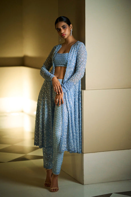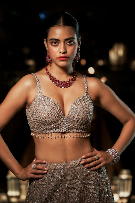 A self taught designer, who followed her passion for fashion and design. Her creative vision, love and dedication to the fashion industry sets her apart from the ordinary. Each piece is beautifully hand crafted with intricate details and embellishments. Her karegari lies in incorporating sequins, pearls, crystals, mirrors and traditional thread work on contempary designs.  Each ensemble is a piece of art with a blend of classic craftsmanship and new age glamour; aiming to revolutionize Indian Couture.