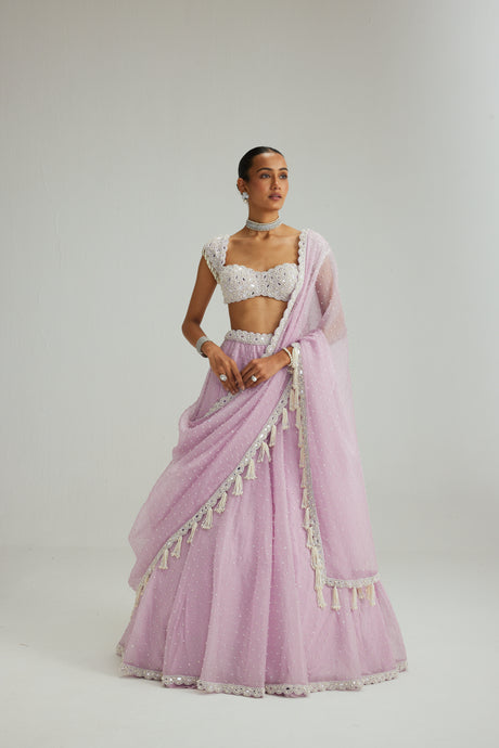 Lavender mirror and pearl lehenga set