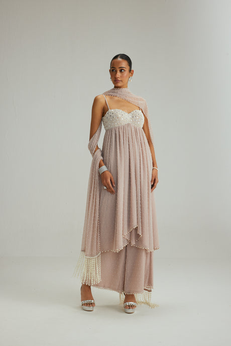 Ash Pink Pearl Drop Kurta set with Dupatta