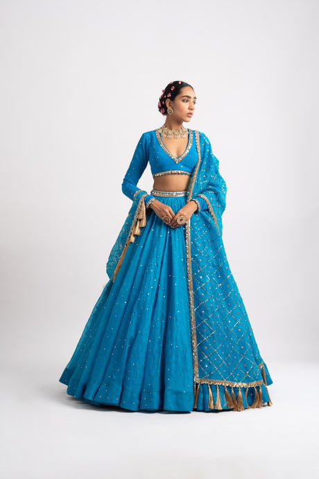 Firozi Silk Organza Heavy Dupatta Lehenga Set