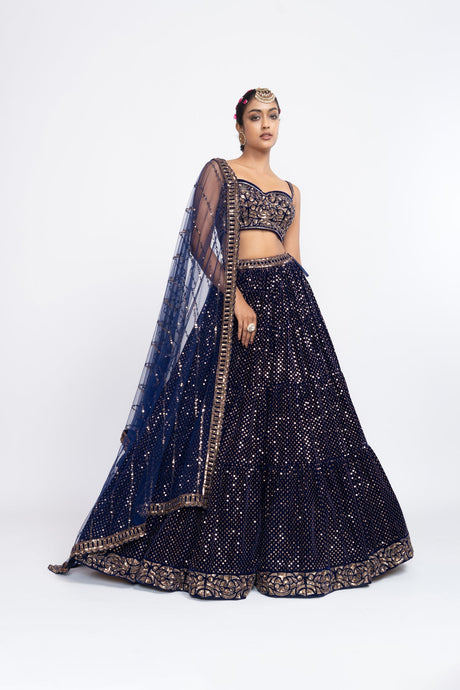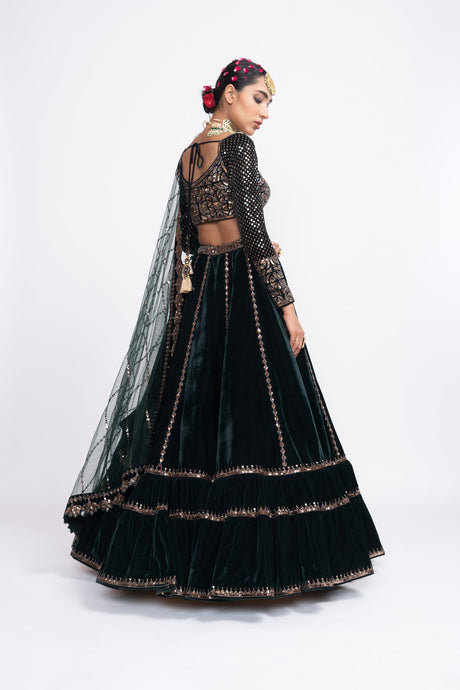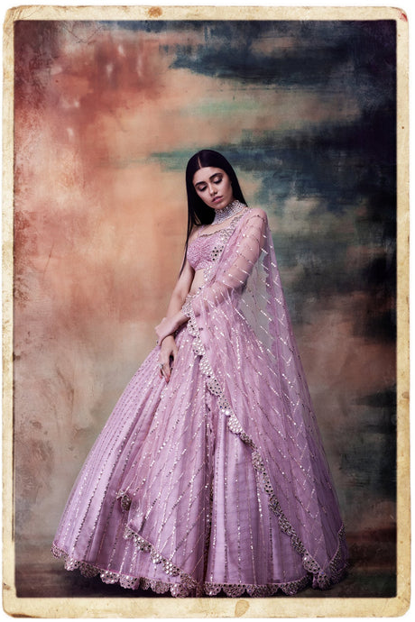 • Intricate Hand Emb Blouse With Tissue Lehenga Set