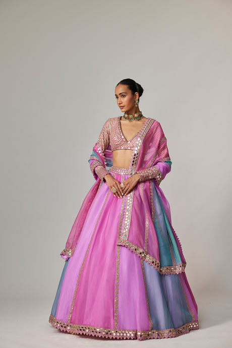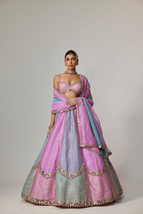 LILAC GOTA MULTICOLOR HEAVY METALLIC LEHENGA WITH CAP SLEEVE BLOUSE