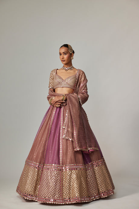 MUD MAUVE MULTICOLOR SEQUIN SCATTER LEHENGA WITH ELBOW SLEEVE BLOUSE