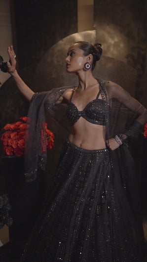 Black Brick Crystal Lehenga Set